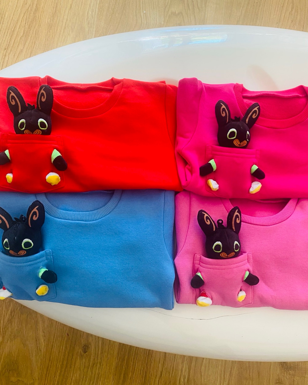 Mikina s králíčkem Bingem v ceně. Tato hřejivá mikina je v matně růžové barvě. Plyšový Bing bydlí v kapse ve vyšitých otvorech a je vyndavací na hraní. Vyrobeno v ČR, velikosti sedí. Složení 95 % kvalitní počesaná bavlna - nejoblíbenější teplákovina, 5 % elastan, 280g/m2. Certifikát kvality Oeko-Tex. Výrobce: HračkOblečky. Stav: skladem Velikostní tabulka