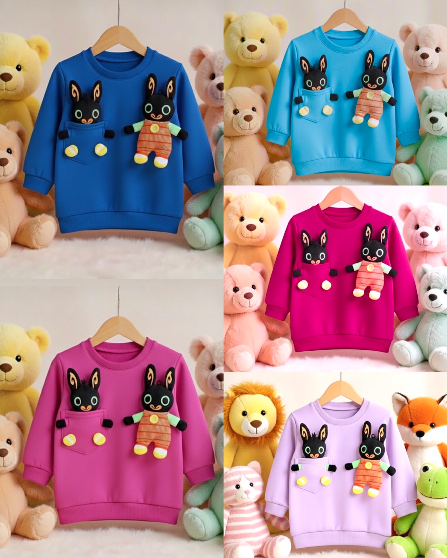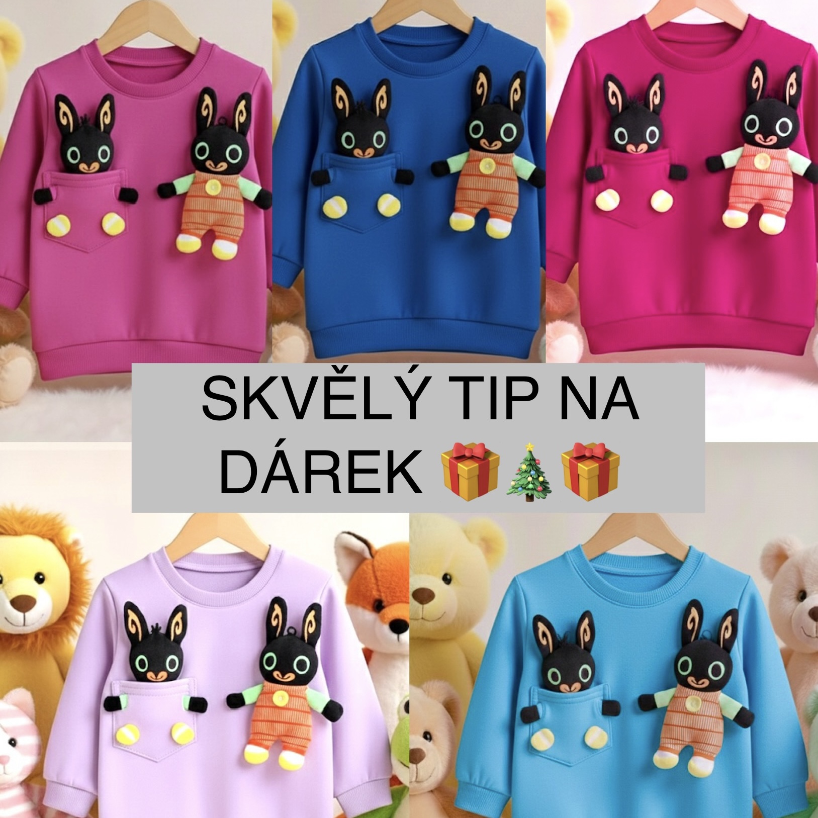 Mikina s králíčkem Bingem v ceně. Tato hřejivá mikina je v matně růžové barvě. Plyšový Bing, jehož podobu vidíte na fotce, bydlí v kapse ve vyšitých otvorech a je vyndavací na hraní. Vyrobeno v ČR, velikosti sedí. Složení 95 % kvalitní počesaná bavlna - nejoblíbenější teplákovina, 5 % elastan, 280g/m2. Certifikát kvality Oeko-Tex. Výrobce: HračkOblečky. Stav: skladem Velikostní tabulka