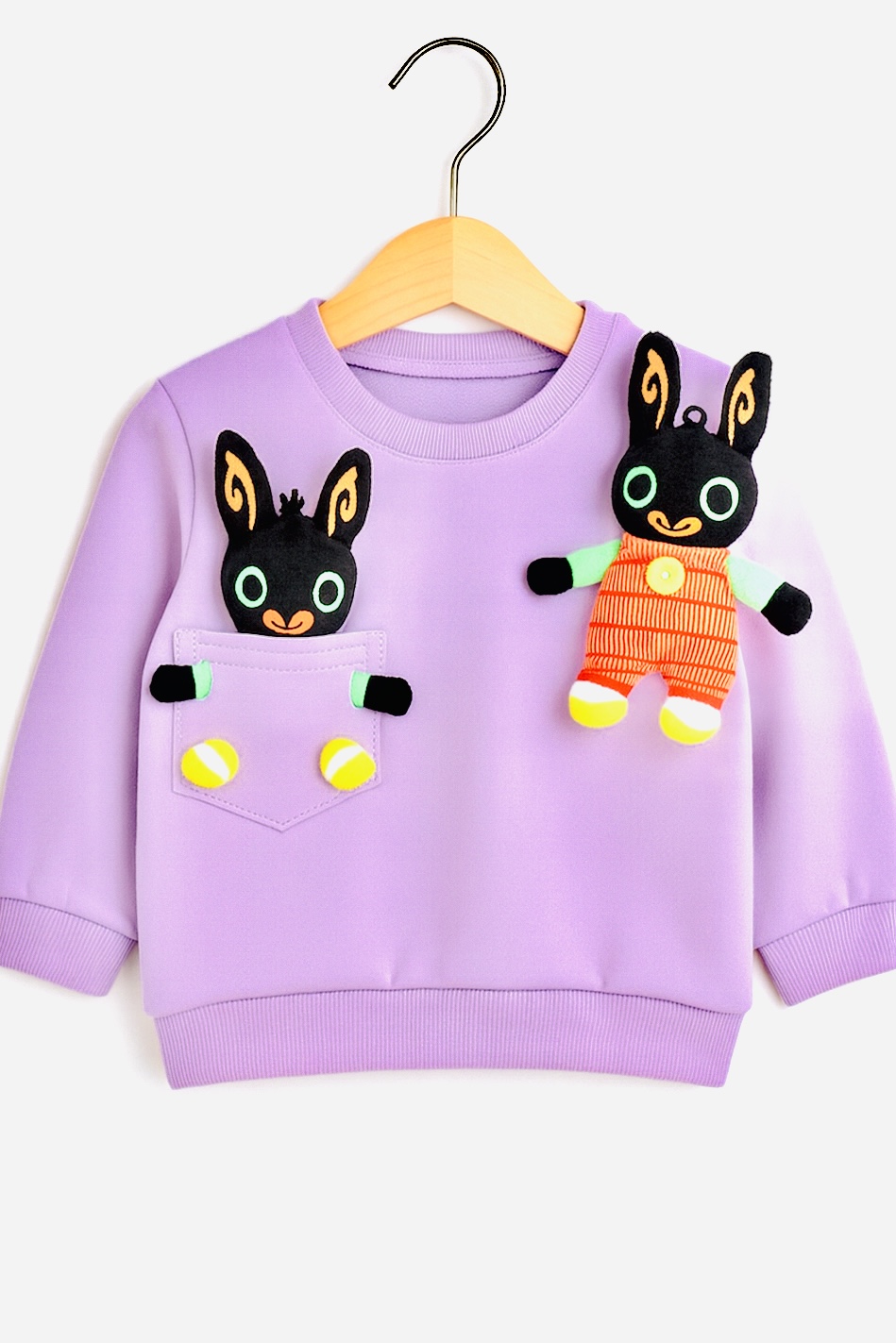 Bavlněná teplá lika mikina s plyšovým králíčkem. Králíček Bing bydlí v kapse s tlapkami ve vyšitých otvorech a je vyndavací na hraní. Poctivá česká výroba, velikosti sedí. Můžete si i přikoupit Hračku na střídačku. Složení 90 % počesaná teplá bavlna a 10 % pes, 280g/m2. Odešleme ihned i na Slovensko, do 2 dnů máte doma. Výrobce: HračkOblečky. Stav: Skladem. Velikostní tabulka mikiny s hračkou