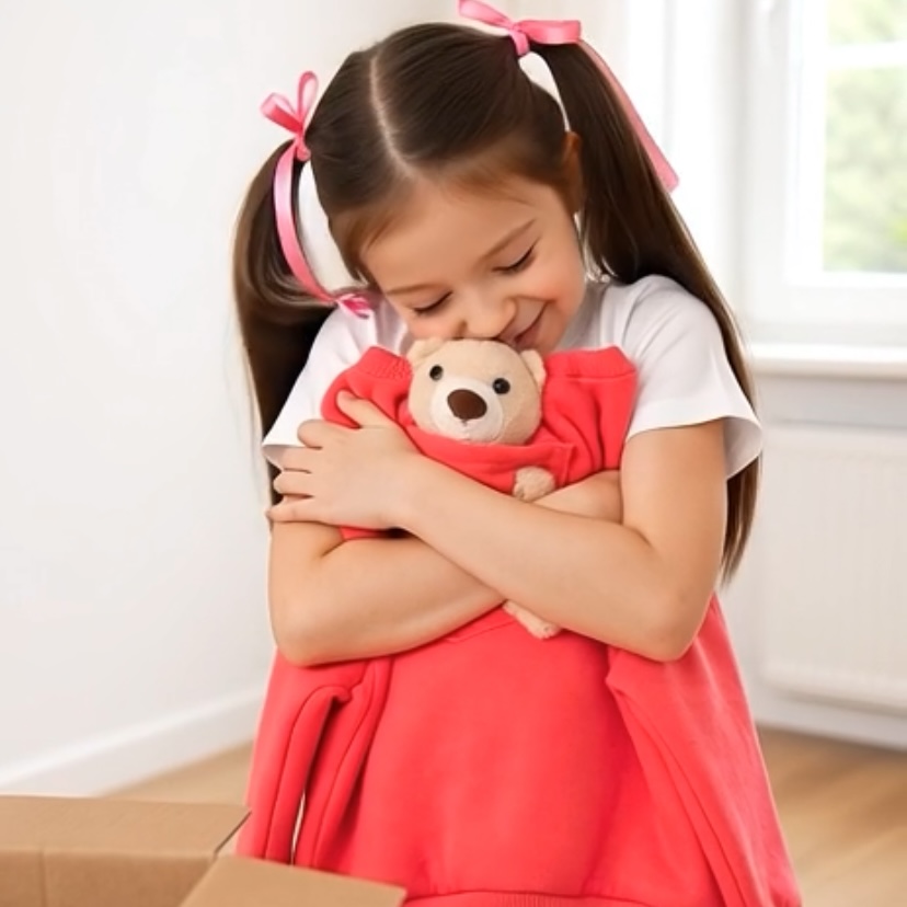 Bavlněná zateplená mikina v barvě korálová zářivá s vyndavacím plyšákem v ceně. Plyšový medvídek bydlí v kapse s tlapkami ve vyšitých otvorech a je vyndavací na hraní. Poctivá česká výroba, velikosti sedí. Složení 90% kvalitní počesaná bavlna a 10 % pes,  krásná gramáž 280 g/m2. Odešleme ihned i na Slovensko, do 2 dnů máte doma. Velikostní tabulka mikiny s hračkou Výrobce: HračkOblečky. Stav: Skladem.