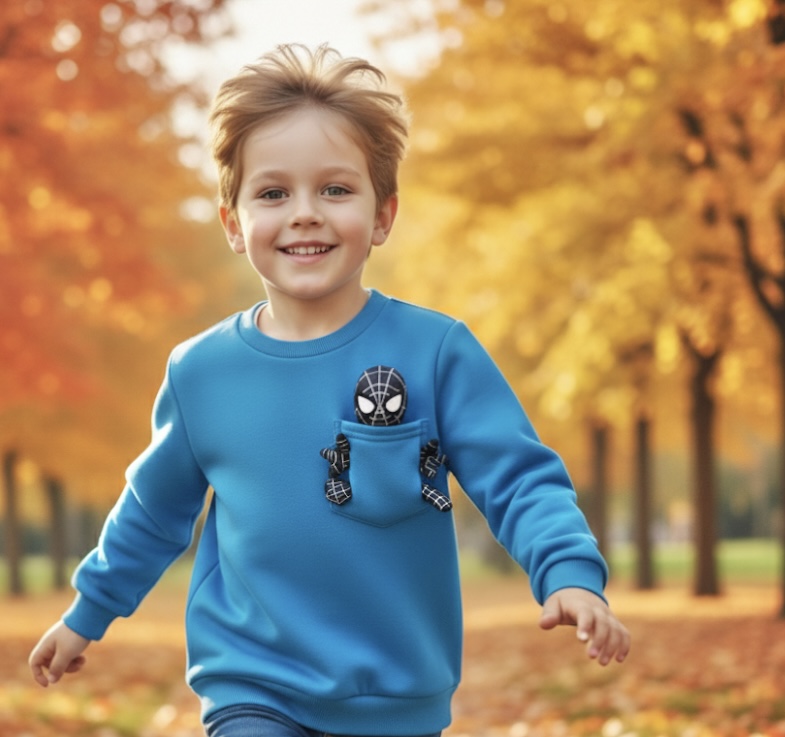 Bavlněná mikina v modré barvě s vyndavací hračkou v ceně. Spiderman bydlí v kapse ve vyšitých otvorech a je vyndavací na hraní. Poctivá česká výroba, velikosti sedí. Můžete si i přikoupit Hračku na střídačku. Složení 95 % počesaná bavlna a 5 % elastan, 250g/m2. Certifikát kvality Oeko-Tex. Odešleme ihned i na Slovensko, do 2 dnů máte doma.