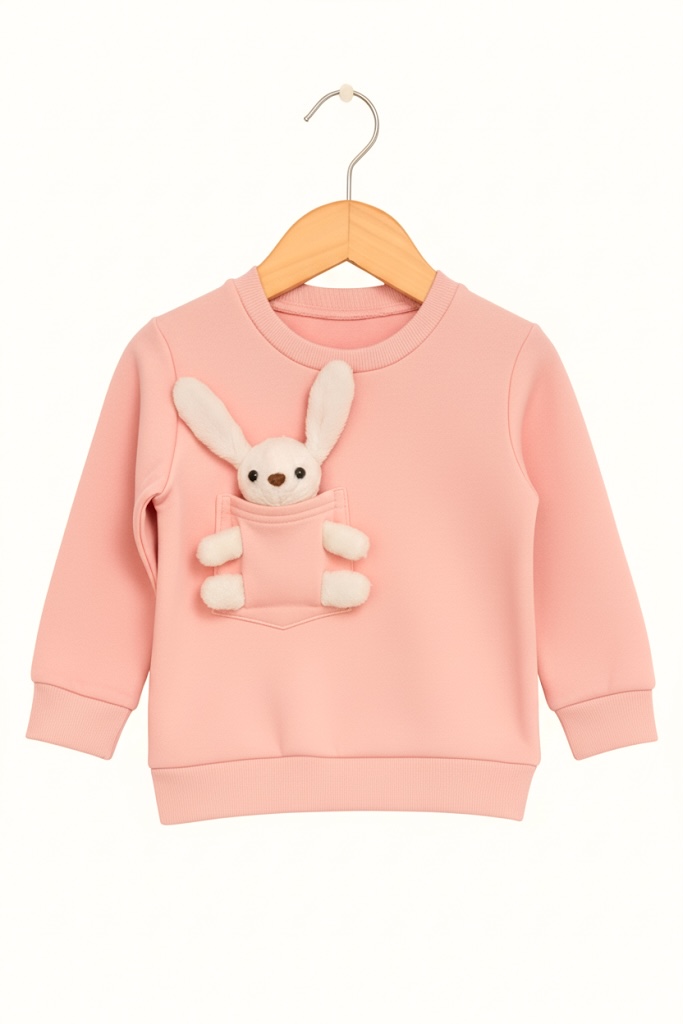 Lososová mikina s plyšovým zajíčkem v kapse. Plyšový zajíček v ceně je vyndavací na hraní, dírky v kapsičce jsou obšité proti párání. Složení 90 % bavlna, 10 % pes, 230 g/m2. Odešleme ihned i na Slovensko, do 2 dnů máte doma. Rozměry 74/80: rukáv od krku 32 cm, š. 30x2, délka 30 cm