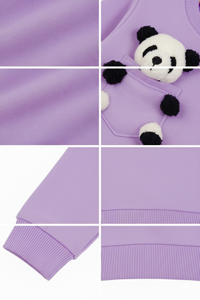 Naše mikinky jsou výjimečné a získaly patent pro celou EU. Lila mikina s pandou v kapse. Plyšová panda je v ceně,  bydlí v kapse ve vyšitých otvorech a je vyndavací na hraní. Složení teplá počesaná bavlna, 90 % bavlna, 10 % pes, 280g/m2. Ve stejném odstínu máme i kalhoty. Certifikát kvality Oeko-Tex. Můžete si i přikoupit Hračku na střídačku. Odešleme ihned i na Slovensko, do 2 dnů máte doma. Velikostní tabulka mikiny s hračkou Výrobce: HračkOblečky. Stav: skladem