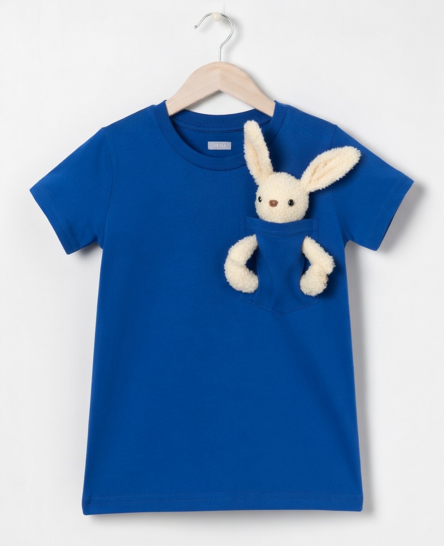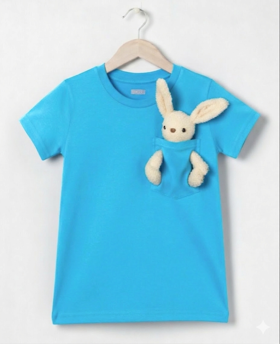 Dětské bavlněné modré tričko s krátkým rukávem a vyndavací hračkou v ceně. Plyšový zajíček bydlí v kapsičce s tlapkami ve vyšitých otvorech a je vyndavací na hraní. Složení triko 95% kvalitní bavlna, 5% elastan, skvělá gramáž látky 200g/m2, certifikát kvality Oeko-Tex. Velikosti odpovídají, poctivá česká výroba. Odesíláme ihned i na Slovensko. Výrobce: HračkOblečky. Stav: skladem