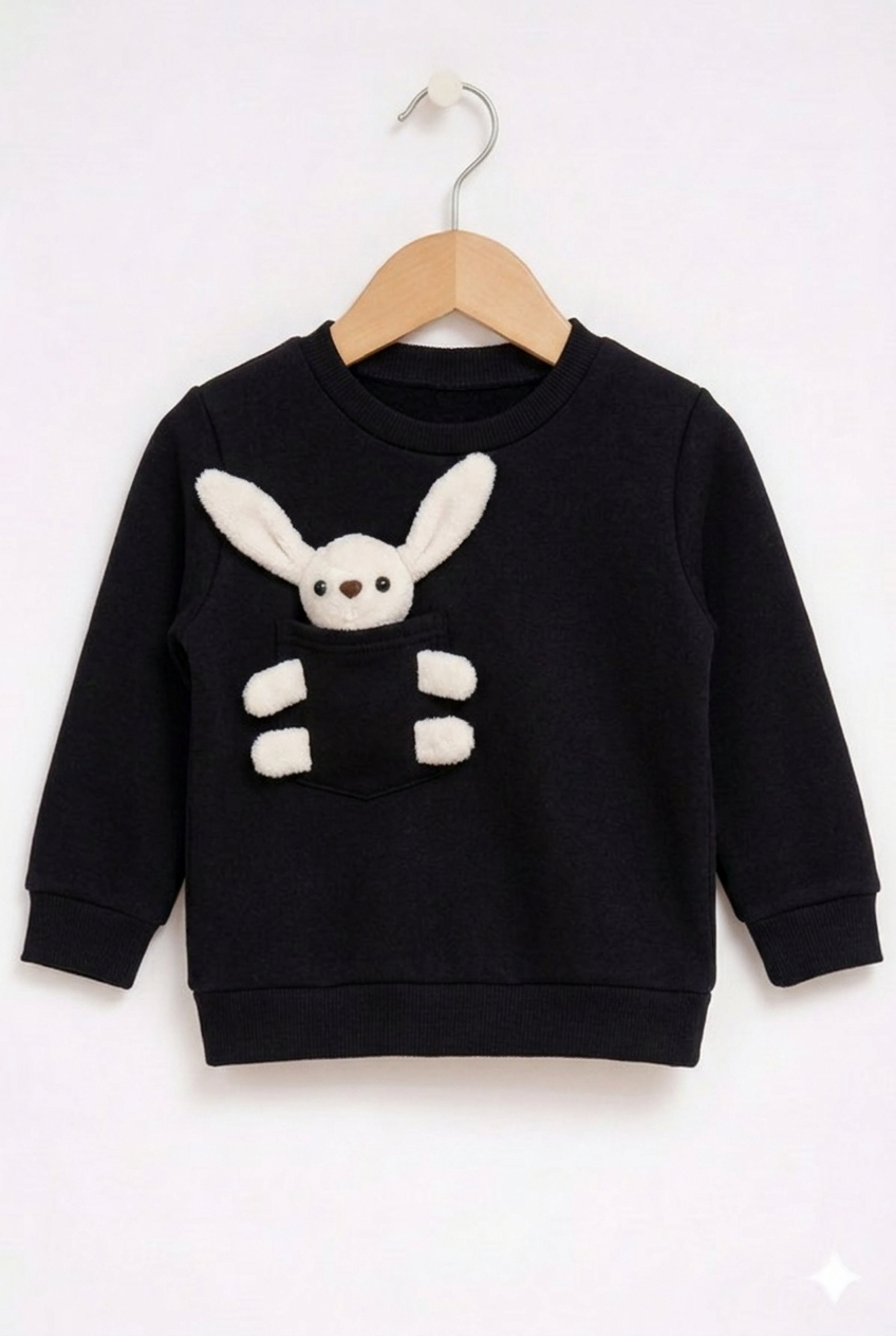 Bavlněná teplá unisex černá mikina s plyšovým zvířátkem. Plyšový zajíček je v ceně a je vyndavací na hraní. Poctivá česká výroba, velikosti sedí, dírky v kapsičce jsou samozřejmě obšité. Odešleme ihned i na Slovensko, do 2 dnů máte doma. Složení 90 % silná hřejivá počesaná bavlna, 10 % pes, 290g/m2 Velikostní tabulka mikiny s hračkou